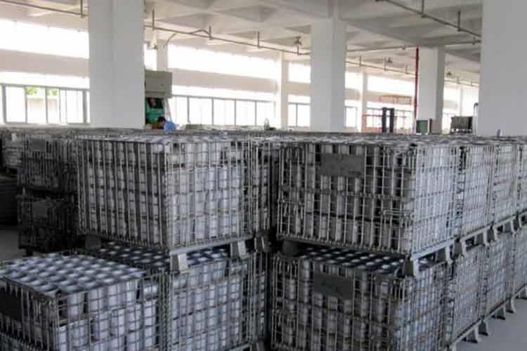 3、空箱堆叠:空箱存放或运输回收时,折叠后再互相堆叠,节省物流本钱,脚柱设计,避免互相压坏变形。